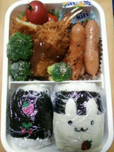 うさぎチーズを可愛く見せるためにおにぎりを小さくするか…面倒です(笑)