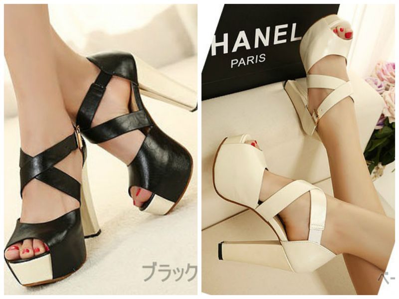 クロスデザインとシックなバイカラーで足をキレイに魅せてくれます♪