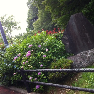 国木田独歩の歌碑をかこむ花々、万葉集約4500句の中で唯一温泉地についての句だそうです。